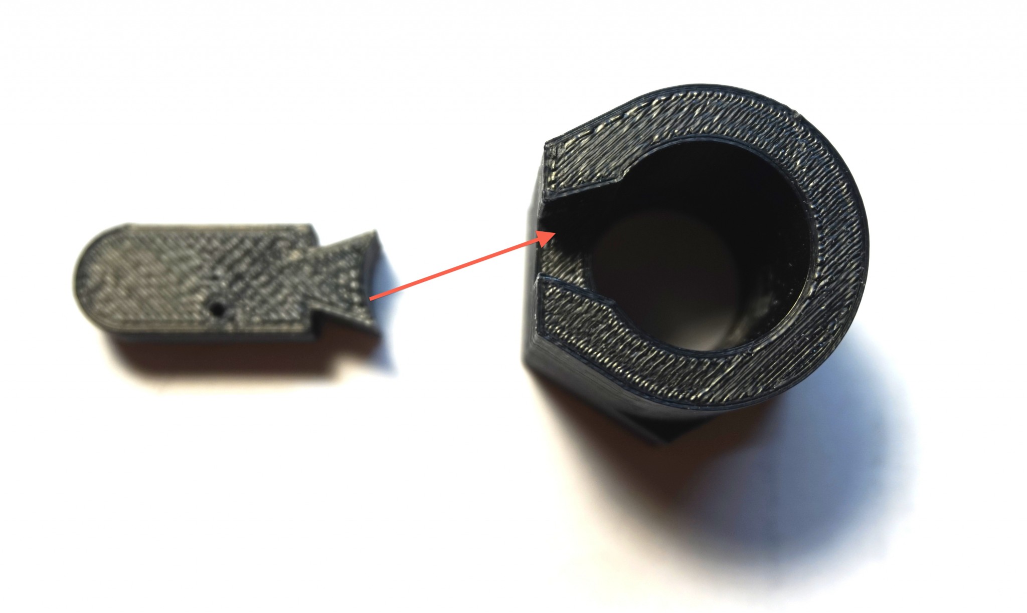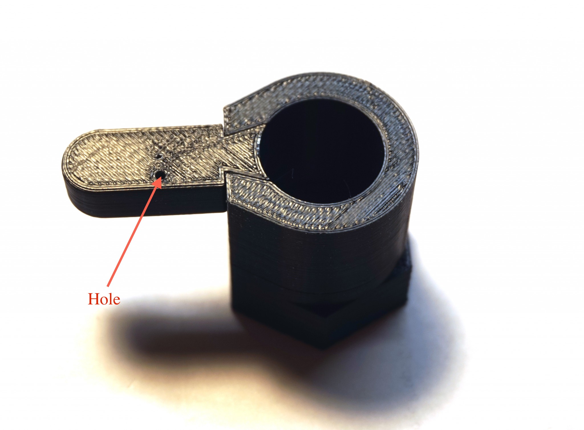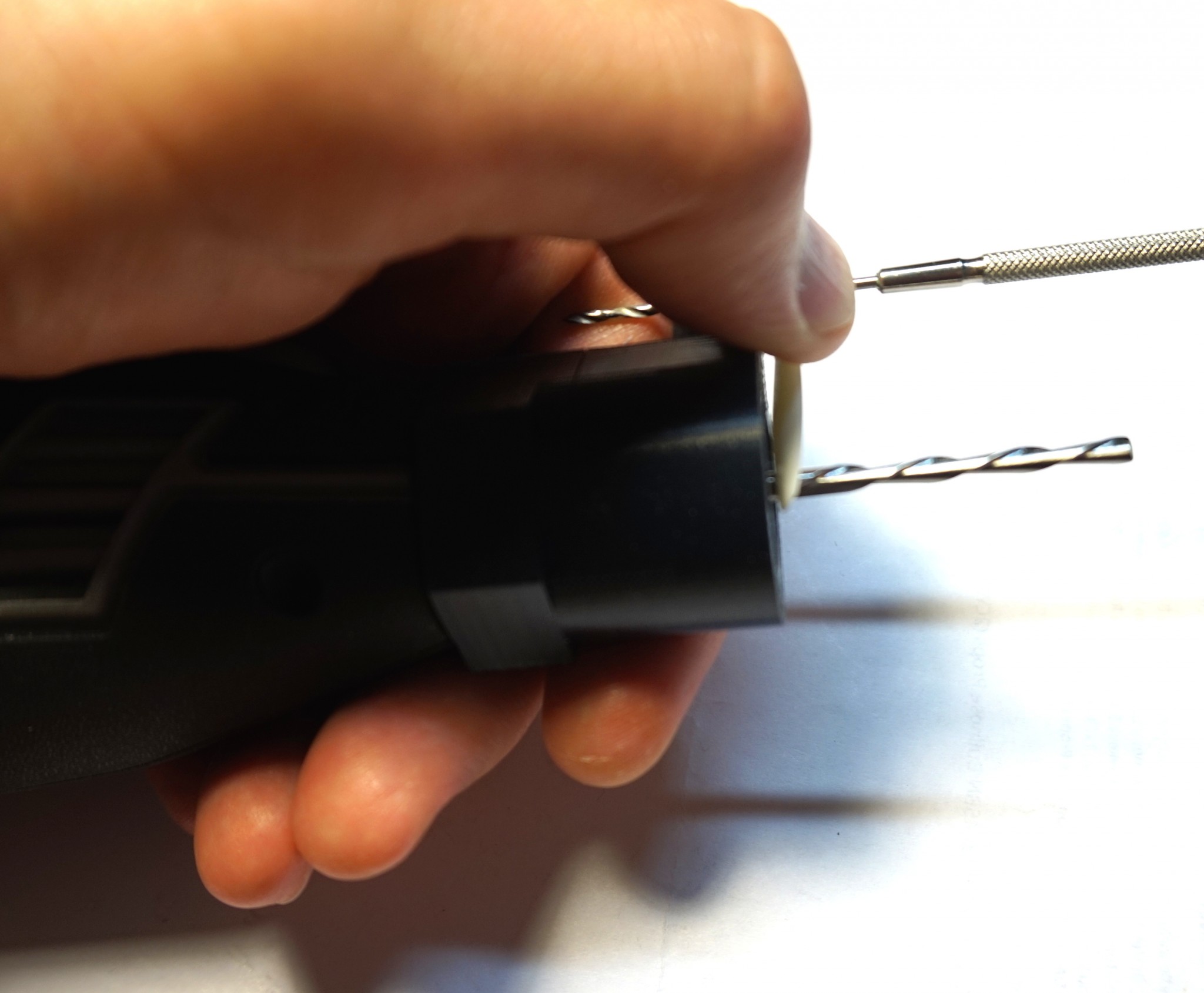 Insert 1.5mm drill bit or some other metal stick with diameter around 1.5mm through propeller mounting hole and into the adapter.