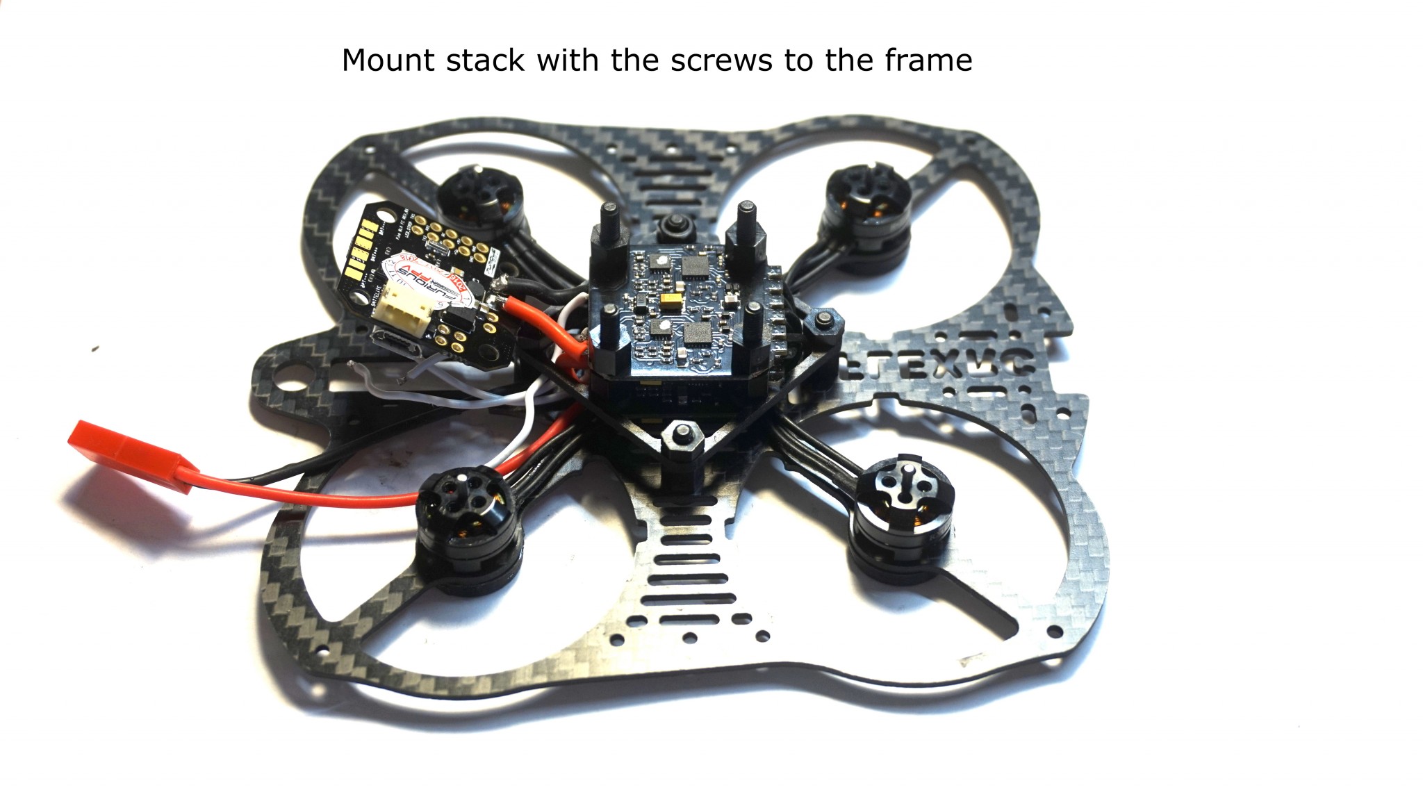 Mount Flight Controller / ESCs stack to the frame with the screws: