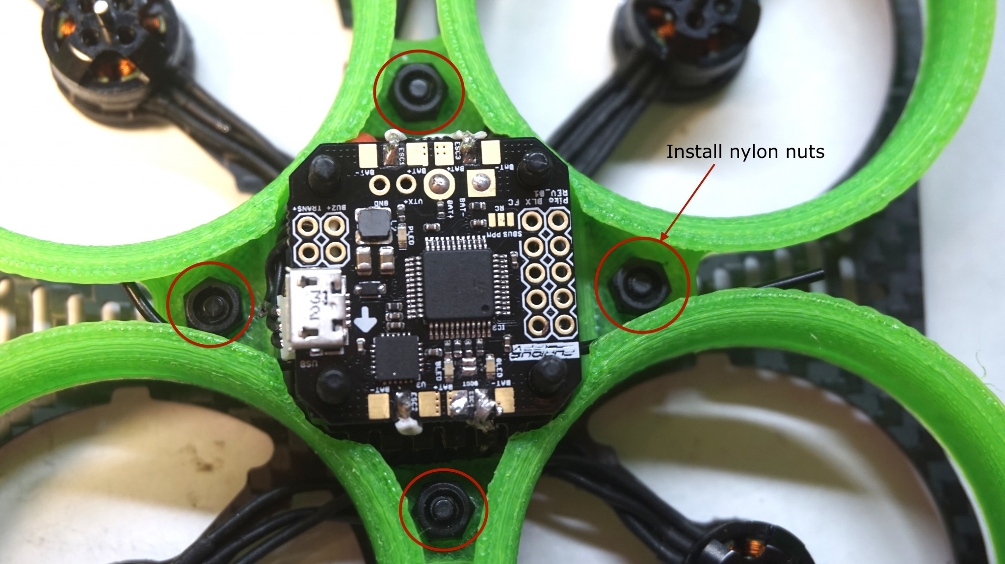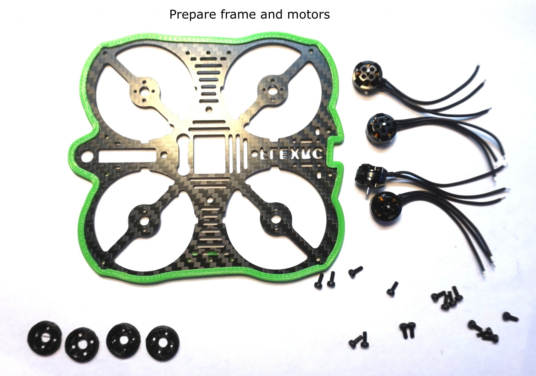 Mount motors to the frame, make sure to use landing feet to adjust length of 5mm motor screw: