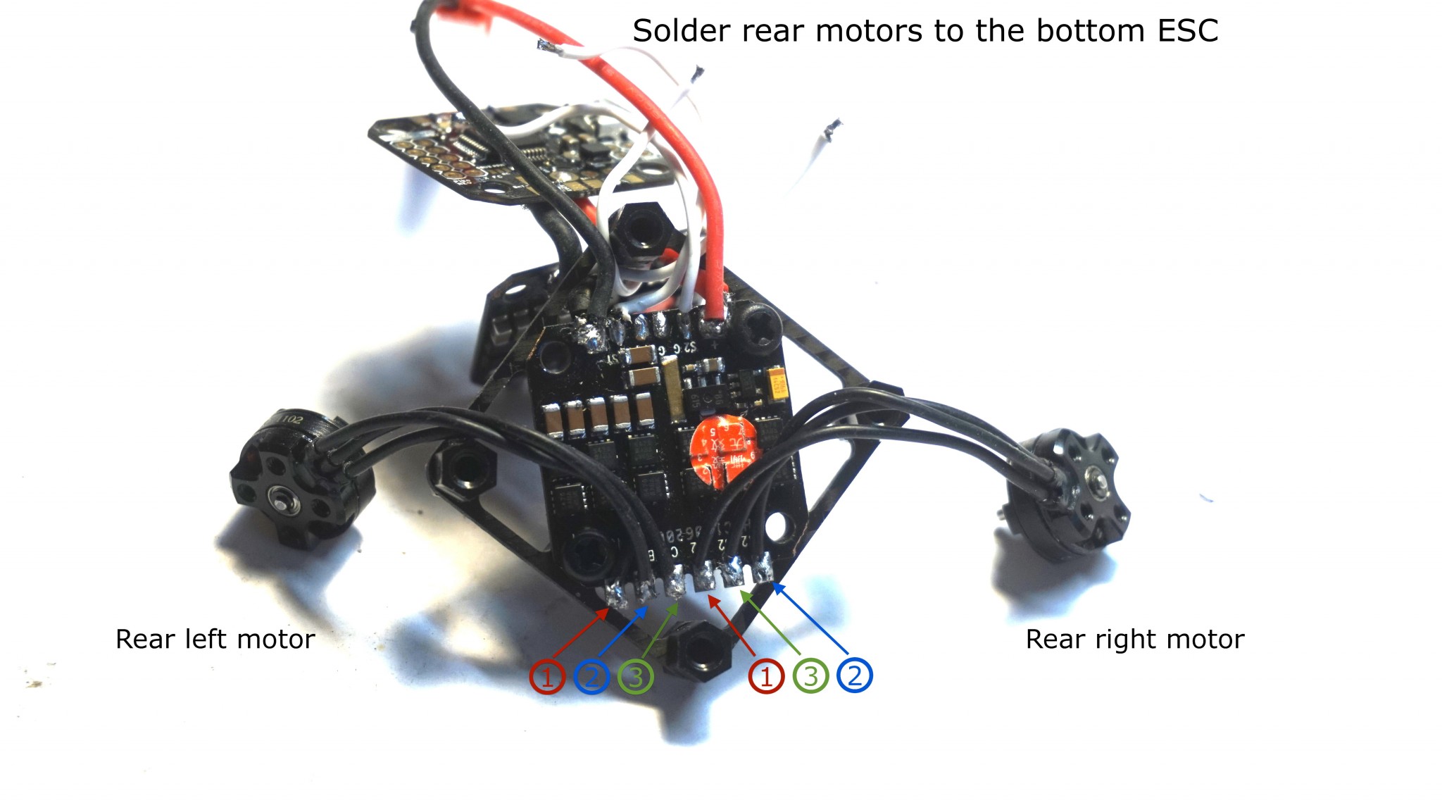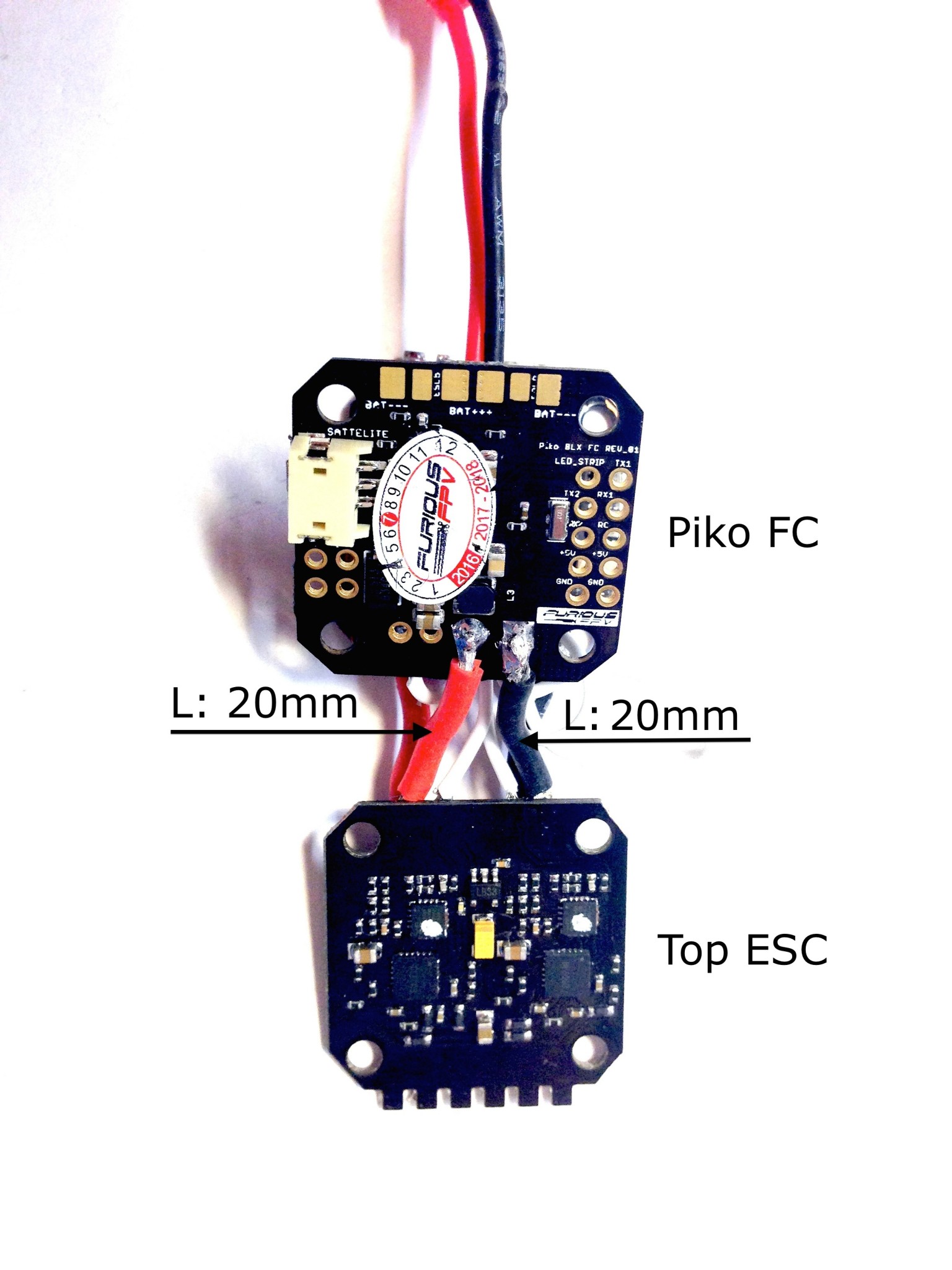 Mount Bottom ESC, facing down, at the bottom of Piko BLX mount and solder rear motors to the Bottom ESC: