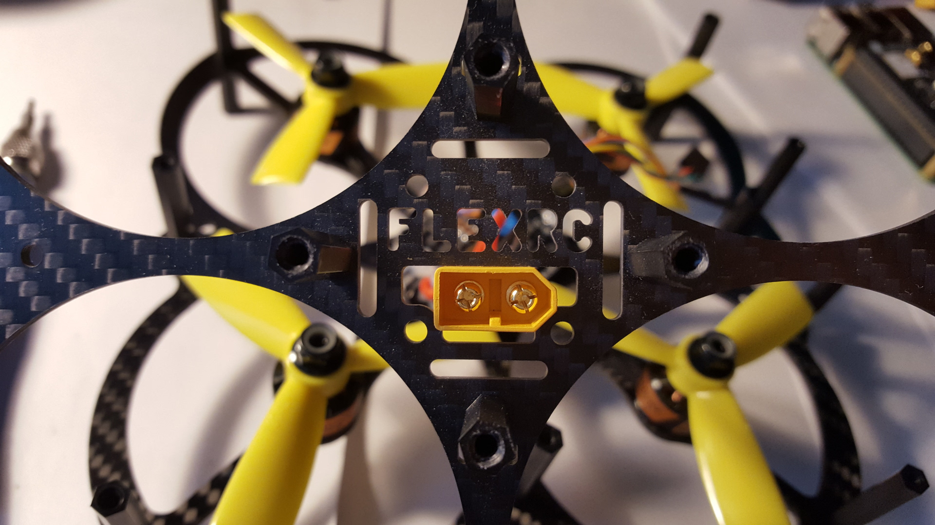 WIth Owl frame itself I also ordered 4-in-1 ESC based on BB2 and BLHeli_S-driven and 4 pieces of T-Motor F20 4100kv. As all these guys are from microworld, I needed to plug it some way to my components from ‘ordinary’ drones. ESC signals happened to connect just fine to PWM outputs via 2.54 mm plugs (OK, I know, they’re to be soldered, but, please, forgive me for this :). And for power connections I grabbed several XT60 males and females. Don’t know, if it’s on purpose or not, but a construction hole in the upper plate of Owl is ideally sized to put XT60 through it.