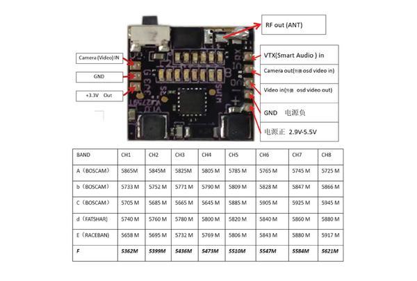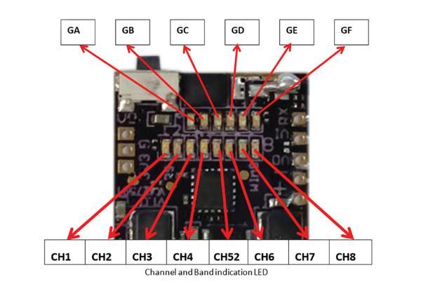 Channel Indicate CH1~CH8 Channel indication with 8LEDS and A~F frequency group Indicate with 6 LEDS