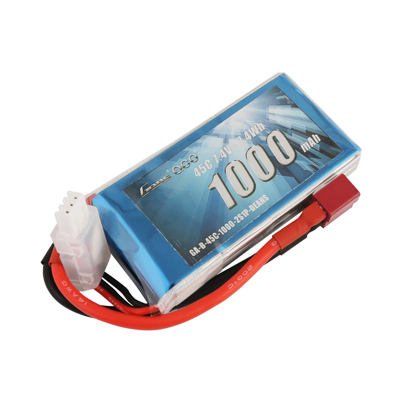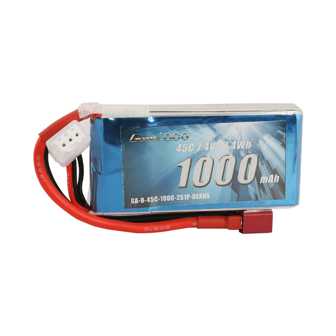Gens Ace 1000mAh 7.4V 45C 2S lipo batteries provide high quality, reliable power for your FPV 180, 220 size, small heli airplane..