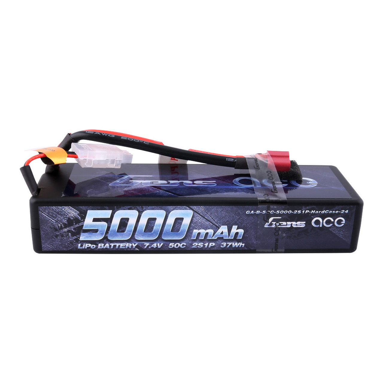 The Gens ace 2S 7.4v lipo battery 5000mah with 50C discharge rate hard case offers you very high power and very long run time for your RC cars. The 100C max burst rate gives you enough power for acceleration. It enhances your driving experience no matter what type of driving you are into. These 7.4V 2S 5000mah lipo batteries packs are made with superior Lithium Polymer raw materials from Japan and Korea. The advanced stacking technology enables a single cell of capacity to reach 5000mah. They are widely fit the 1/8 and 1/10 RC Car Model.
