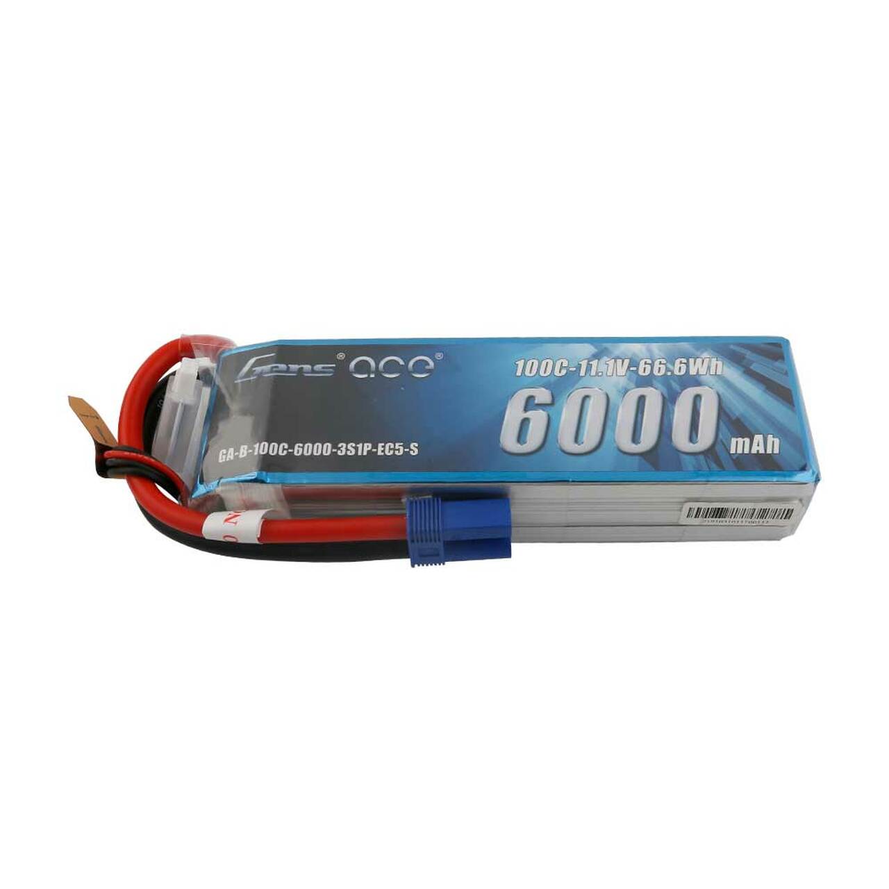 Gens ace 6000mAh 11.1V 100C 3S1P LiPo Battery Pack with EC5 Plug – Short Size