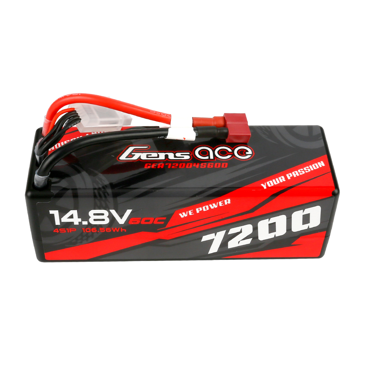 Gens ace 7200mAh 14.8V 60C 4S1P HardCase Lipo Battery 14# with Deans Plug