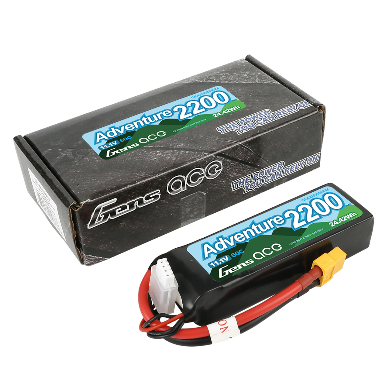 The Gens ace adventure 2200mAh 3S 11.1V 60C Lipo Battery Pack comes pre-equipped with the industry standard XT60 connector, no soldering required! With a maximum discharge rate of 100C, this 2200mAh 3S lipo battery is ready to give you all the power you need, whatever your application. Gens Ace batteries deliver full capacity & discharge as well as being the best value batteries in the hobby market today! Trust Gens Ace for long LiFe and consistent durability run after run.