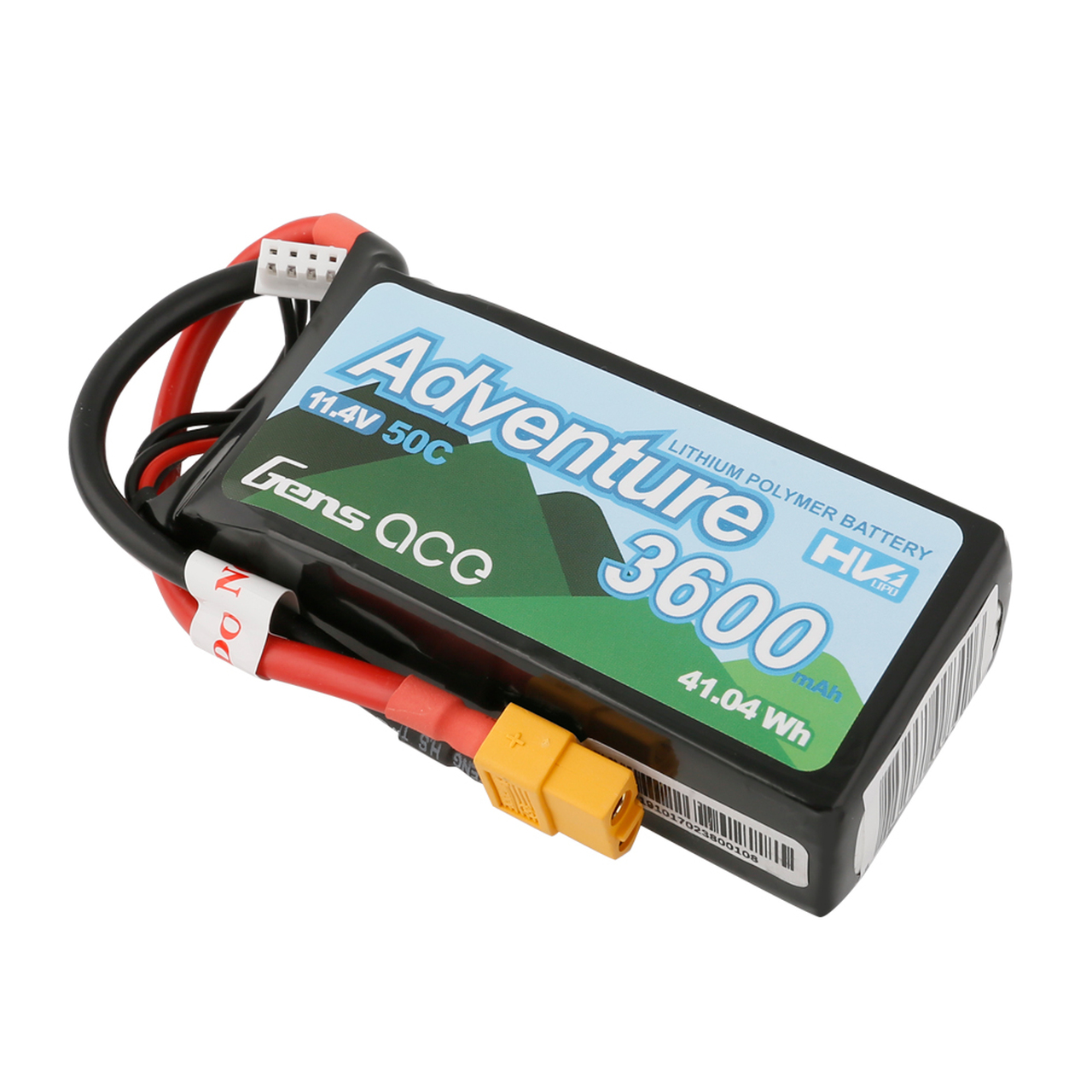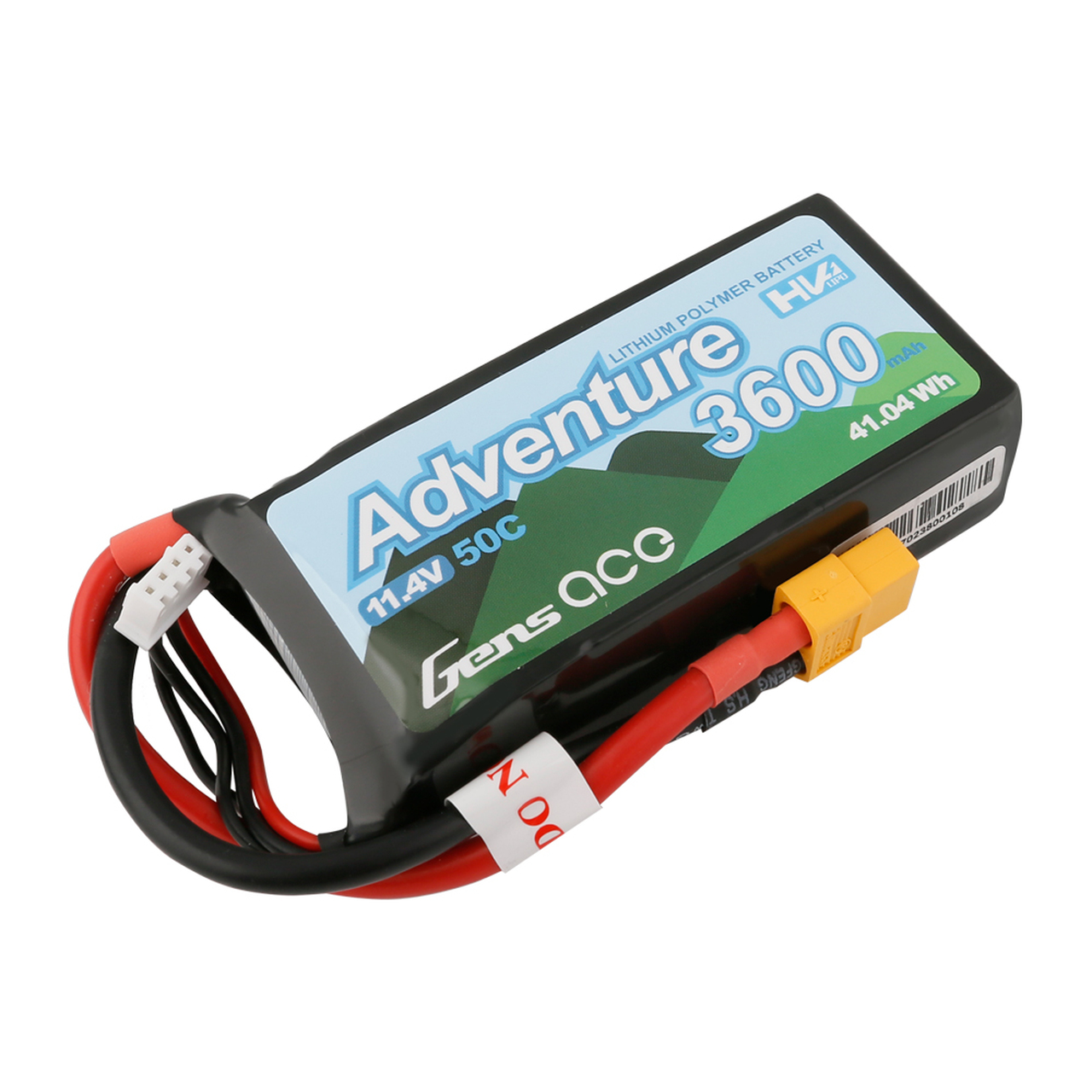 The Gens ace adventure 3600mAh 3S 11.4V 50C Lipo Battery Pack comes pre-equipped with the industry standard Deans connector, no soldering required! With a maximum discharge rate of 100C, this 3600mAh 3S lipo battery is ready to give you all the power you need, whatever your application. Gens Ace batteries deliver full capacity & discharge as well as being the best value batteries in the hobby market today! Trust Gens Ace for long LiFe and consistent durability run after run.