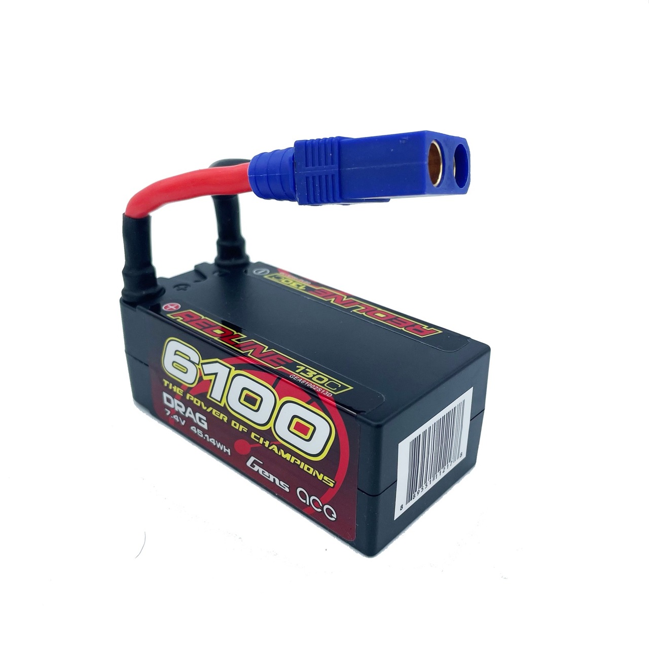 Gens Ace Redline Drag racing Series 2S 130C 6100mAh Hardcase LiPo Battery Pack. The hardcase LiPo Battery Pack with 8.0mm bullet, burst to 500A discharge current makes it deliver high capability and enough horsepower for your drag racing.