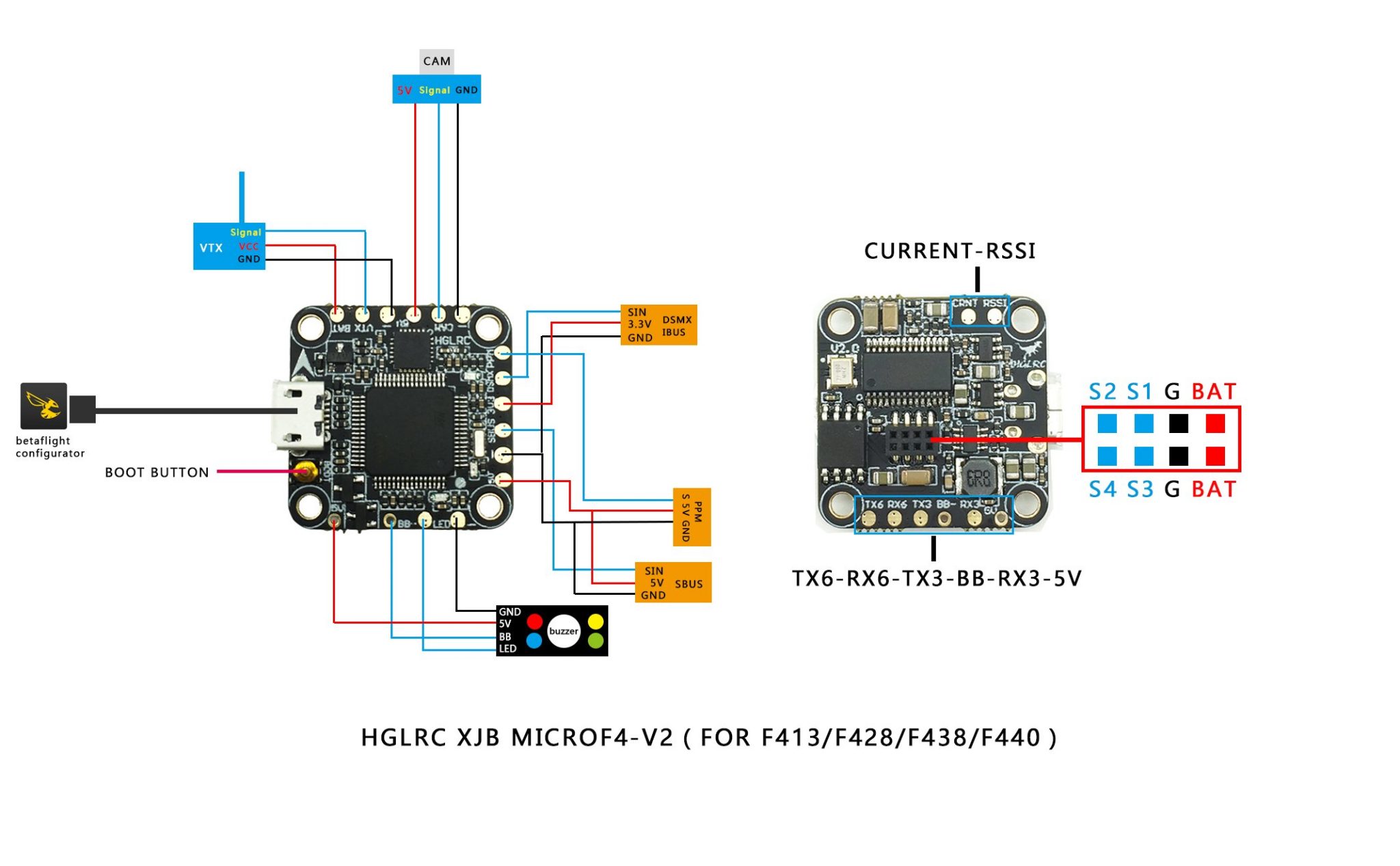 HGLRC F4 V2 Flight Controller for XJB F413 F428 F438 F440