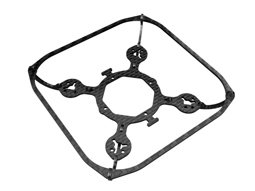 Nano X 75mm is very tiny and light modular FPV racing drone frame that is designed to be used with 25.5×25.5 TinyWhoop compatible flight controller / esc stack and can accommodate up to 40.5mm propellers with an optional hardware-less propeller protection.