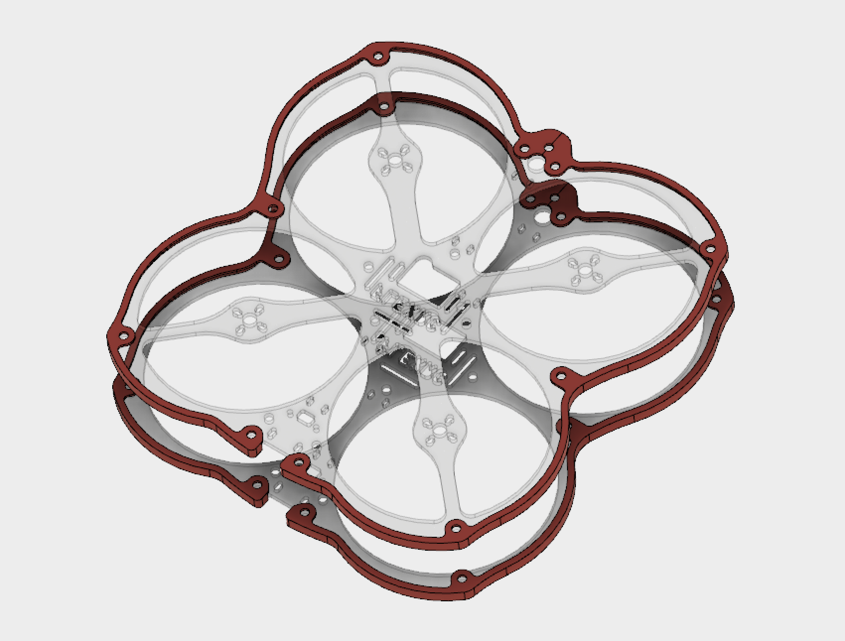 Full body TPU Bumper for both plates of the new Owl quadcopter frame (version #1 without HS1178 camera support). It is soft, durable and designed to protect walls from possible scratches by carbon fiber and as an additional protection in case of a crash.