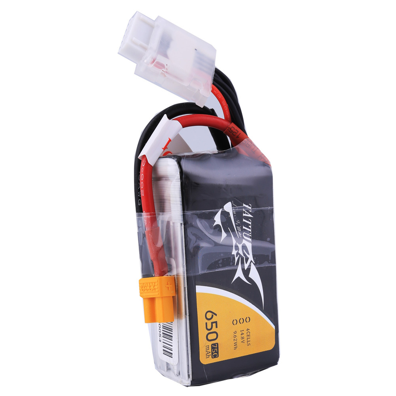 Tattu 650mAh 4S1P 75C 14.8V Lipo battery with XT30 plug provide high quality, reliable power and it is specially designed for your 90-150mm size FPV quadcopters.
